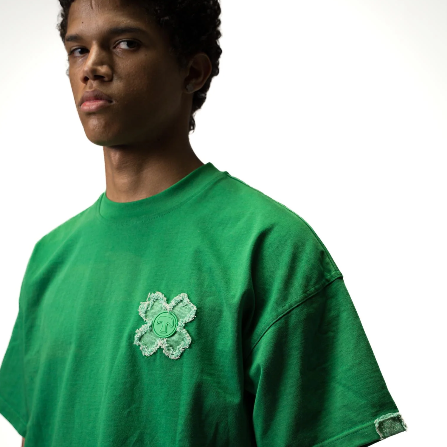 • Logo: With clover leaves made of ripped denim, discreetly on the chest and back, plus a large clover leaf (XXL) prominently on the back – each rip tells a story of originality and character.